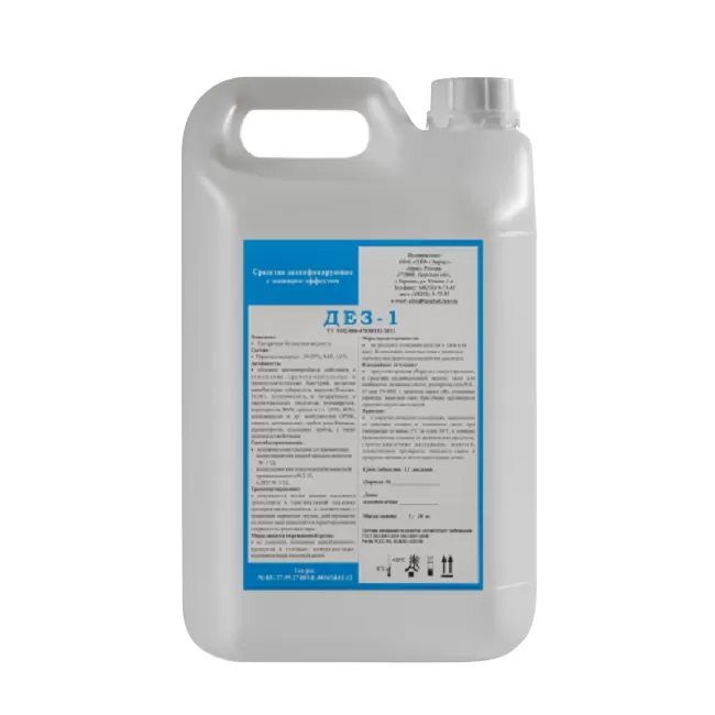Дезинфицирующее средство с моющим эффектом "ДЕЗ-1" предназначено для снижения микробиальной загрязненности поверхностей при профилактической, текущей и заключительной дезинфекции, совмещенной с мойкой.