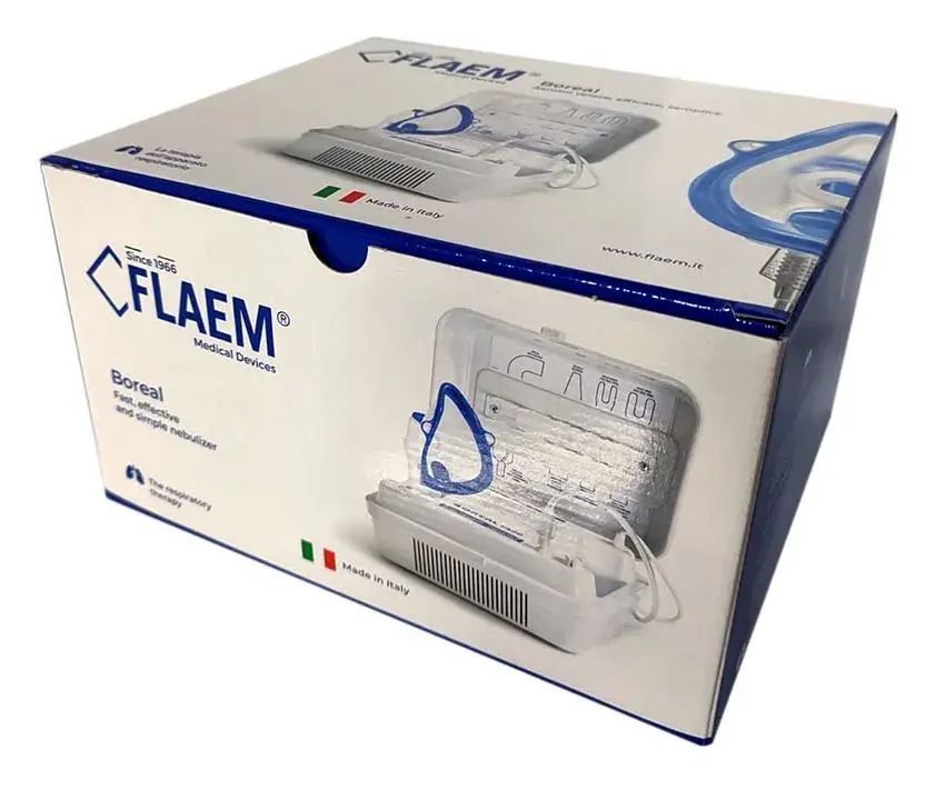 Компрессорный небулайзер, ингалятор Flaem Nuova Boreal F400, предназначен для преобразования жидкого лекарственного средства в аэрозоль для последующего вдыхания и доставки в дыхательные пути, в соответствии с рекомендациями медицинского специалиста.