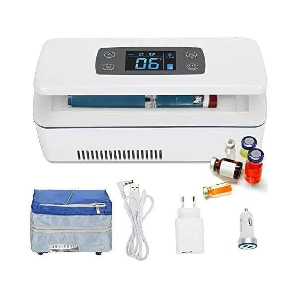 Портативный мини-холодильник предназначен для перевозки и хранения инсулина, пептидов, гормонов, вакцин, иммуноглобулинов и других термочувствительных лекарств. Он автоматически поддерживает температуру от +2 до +8 °C в течение не менее 6 часов от одной батареи (при средней температуре окружающей среды +25 °C). Дополнительная батарея увеличивает время работы до 12 часов.